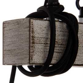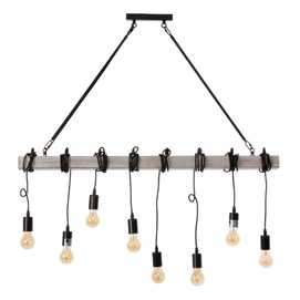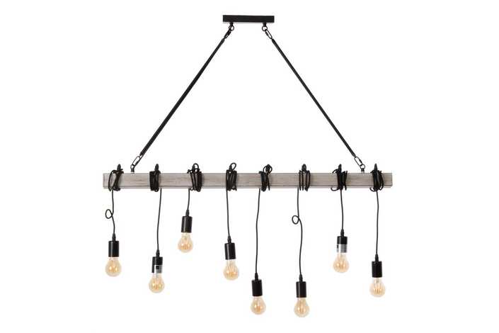 MATERIAL: HIERRO. VOLTAJE: 220V CASQUILLO: E27 BOMBILLAS: 8 X 40W MÁX (NO INCLUIDAS). COLOR HIERRO: BLANCO ROZADO. COLOR CABLES: NEGRO. LARGO CABLE: 30 CM. ALTURA DESDE LA BASE AL EMBELLECEDOR: 61,5 CM.