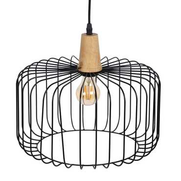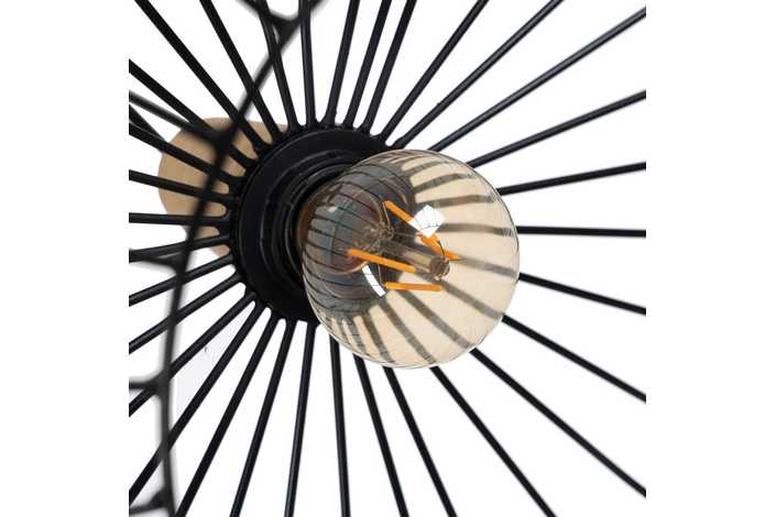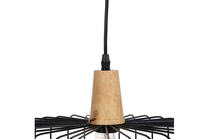 Material: hierro - madera 220-240v Casquillo: E-27 Bombilla: 1x 60w Cable: negro Medida cable: 80cm.