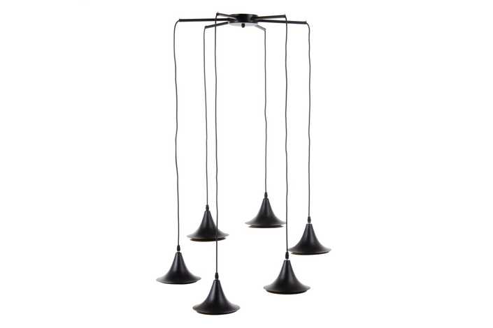 Material: hierro Voltaje: 250v - 1E4 Bombilla: 6 x G9 (no incluida) Medida tulipas: 18.5x18.5x16cm. Largo cable: 100cm. Medida florín: 11.5x11.5x2.5cm. La altura de la tulipa se regula a través del cable. Largo cable: 110cm.