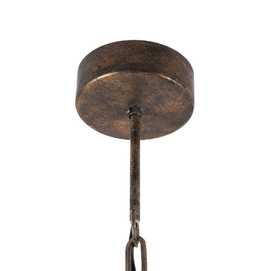 Material: hierro - Voltaje: 220-240v. Bombilla: máx. 40w. (no incluida) Casquillo: E27 Cable negro, largo: 120cm. Largo cadena: 90cm.