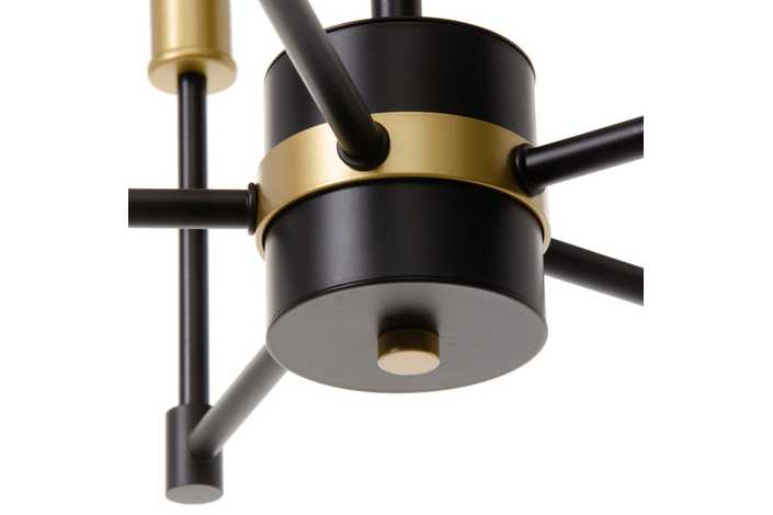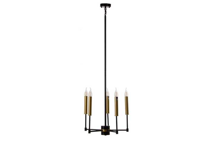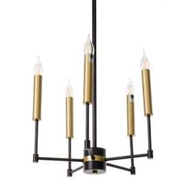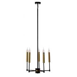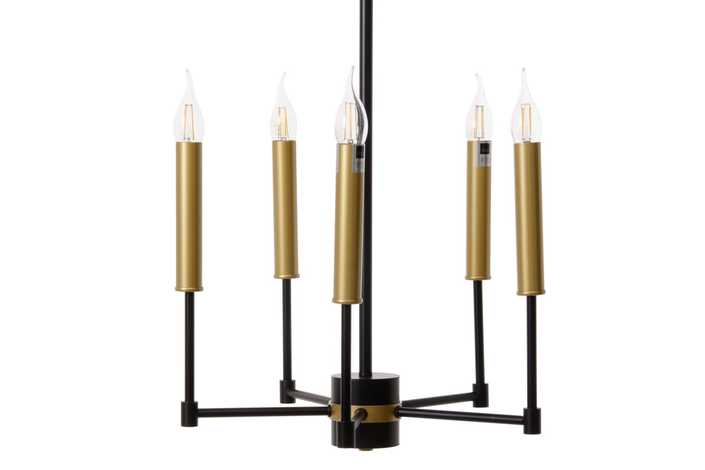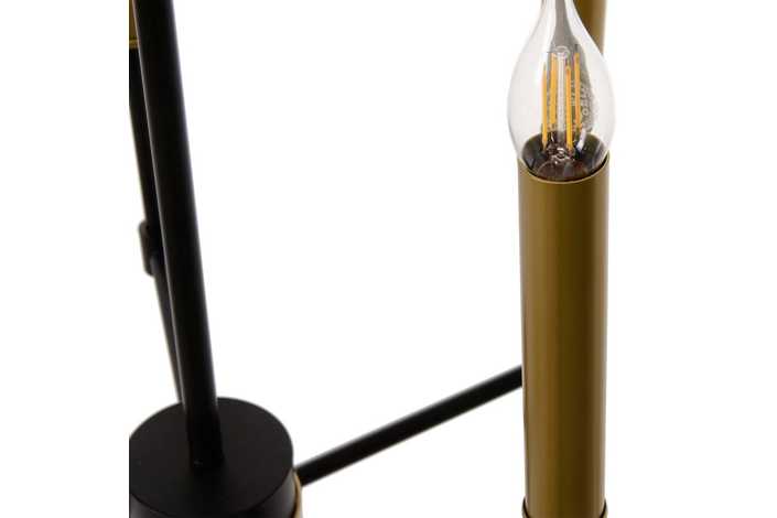 MATERIAL: HIERRO VOLTAJE: 220V CASQUILLO: E14 BOMBILLAS: 5 X 40W MÁX (NO INCLUIDAS). ALTURA TOTAL: 110 CM. LARGO CABLE: 13 CM. COLOR HIERRO NEGRO Y DORADO.