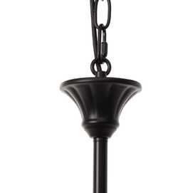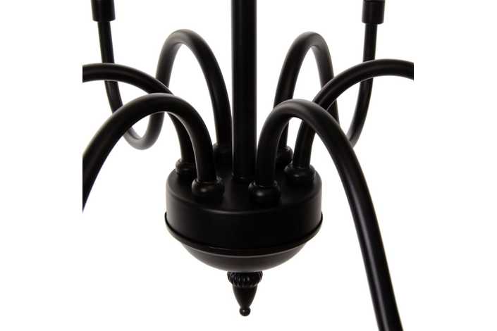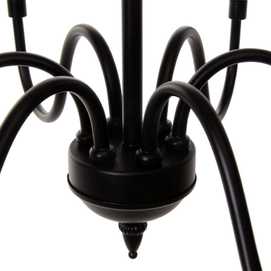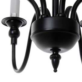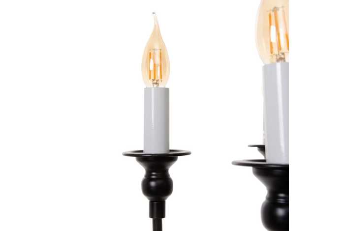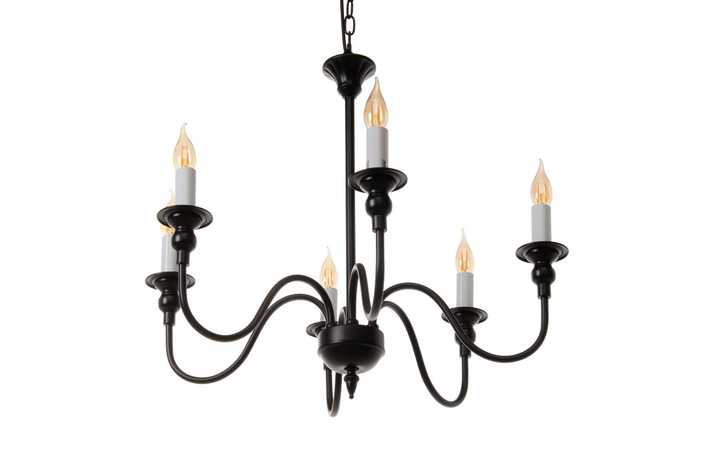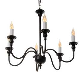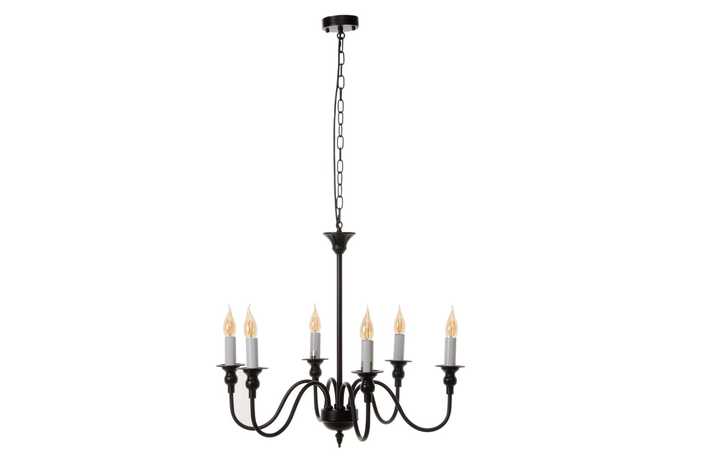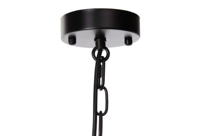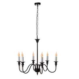 MATERIAL: HIERRO. VOLTAJE: 220V. CASQUILLO: E14. BOMBILLAS:6 X 40W MÁX (NO INCLUIDAS). HIERRO COLOR NEGRO Y BLANCO. LARGO CADENA: 54CM. LARGO CABLE: 74CM.