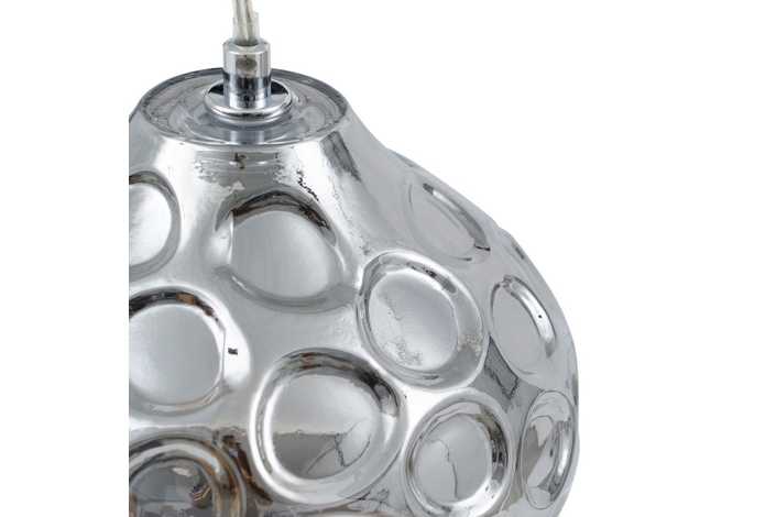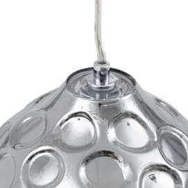 Material: cristal, hierro. Número de bombillas necesarias:1 Bombillas no incluidas. Voltaje:220-240V Bombilla: 60W máx. Casquillo: E27 Longitud del cable:2.2m. Color cable: transparente. Diámetro tulipas:18cm