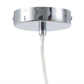 Material: cristal, hierro. Número de bombillas necesarias:1 Bombillas no incluidas. Voltaje:220-240V Bombilla: 60W máx. Casquillo: E27 Longitud del cable:2.2m. Color cable: transparente. Diámetro tulipas:20cm