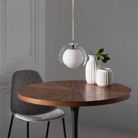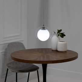 Material: cristal, hierro. Número de bombillas necesarias:1 Bombillas no incluidas. Voltaje:220-240V Bombilla: 40W máx. Casquillo: E14 Longitud del cable:2.2m. Color cable: transparente. Diámetro tulipas:25cm