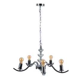 Material: Metal hierro - cristal. Voltaje: 220-240V. Medida cadena: 46cm. Casquillo: E27. Bombilla: 5x 60W Máx.