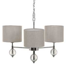 TULIPA DE LINO COLOR GRIS ( 3 ) MEDIDAS DE LA TUPLIPA:16X16X13CM. MEDIDAS BOLA CRISTAL:6X6CM. LONGITUD CADENA:37CM. Voltaje: 220-240V. Casquillo: E14. Bombilla: 3*40W máx (no incluida).