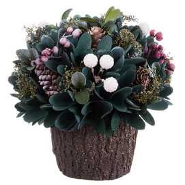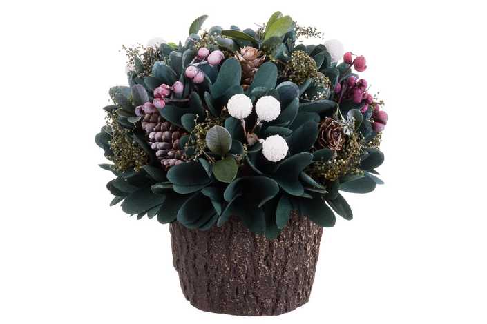 MACETA FOLLAJE Y ACEBO MADERA/PLÁSTICO 18 X 18 X 18 CM