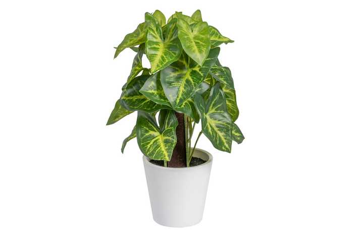 PLANTA: Materiales:Polietileno y hierro. MACETERO: Color blanco. Medidas: Alto:7.5CM Base:5X5CM Boca:8X8CM. Materiales: Polietileno. Relleno:Cemento.