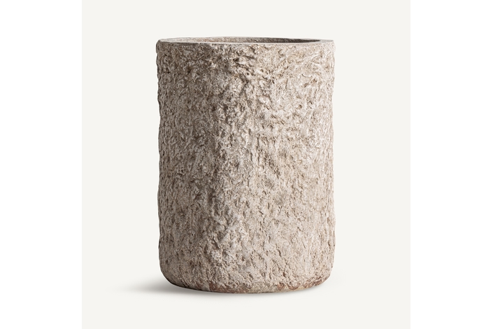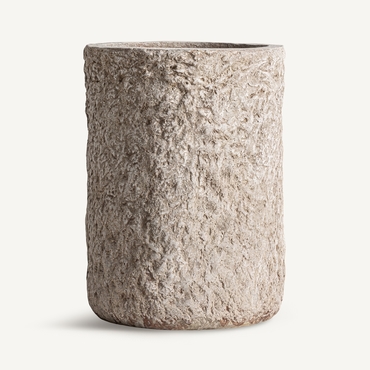 Macetero, fabricado en cemento en color blanco, combinado con fibra de vidrio.