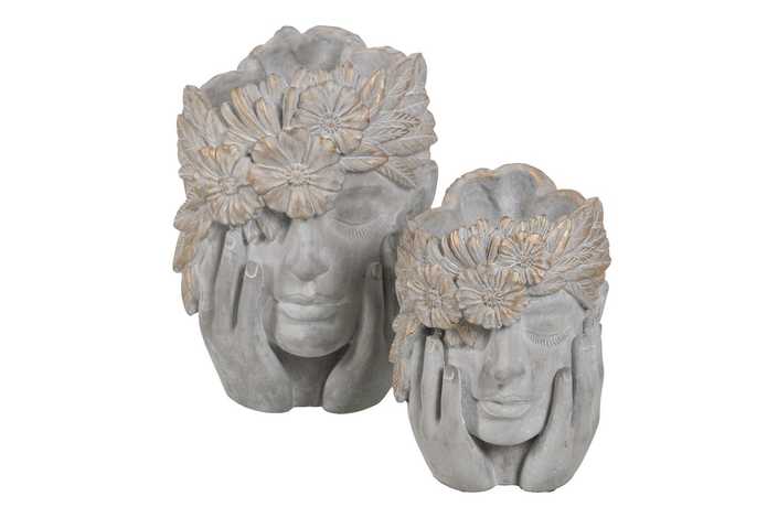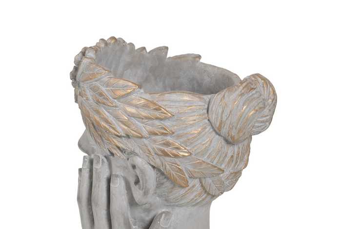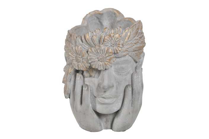 MACETERO CARA GRIS CEMENTO DECORACIÓN 22 X 17 X 24 CM