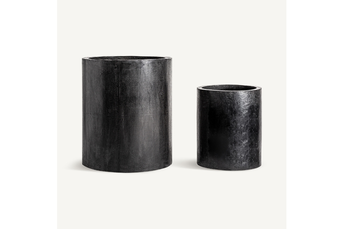 Macetero j/2 de estilo contemporáneo, fabricado en fibra de vidrio en color negro.