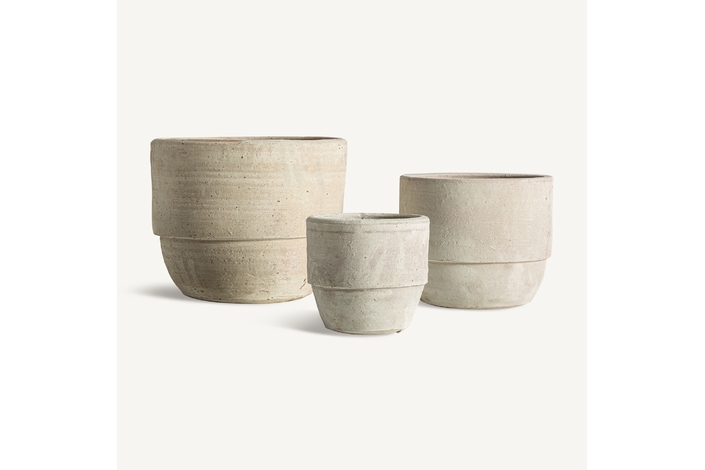 El Macetero J/3 Kowalski de VICAL combina la pureza del blanco roto con un acabado envejecido que potencia su carácter artesanal. Fabricado en arcilla, es un set perfecto para proyectos que buscan naturalidad, textura y un toque mediterráneo atemporal.