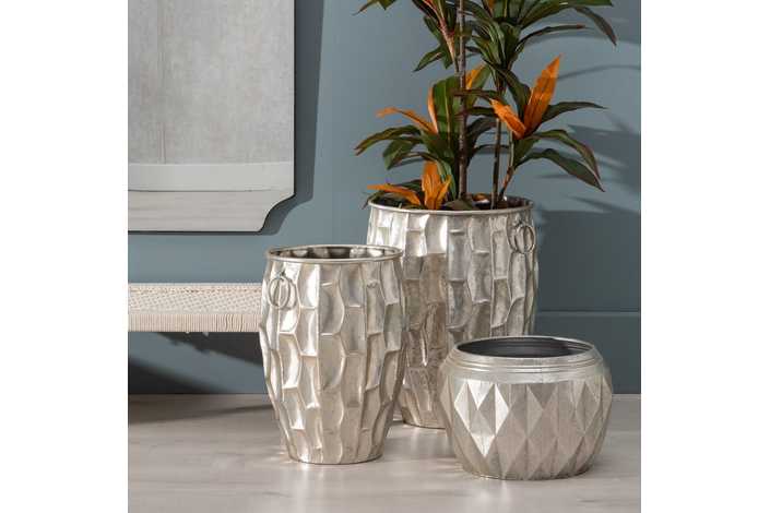 MACETERO PLATA METAL DECORACIÓN 39 X 39 X 51 CM
