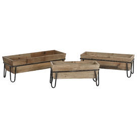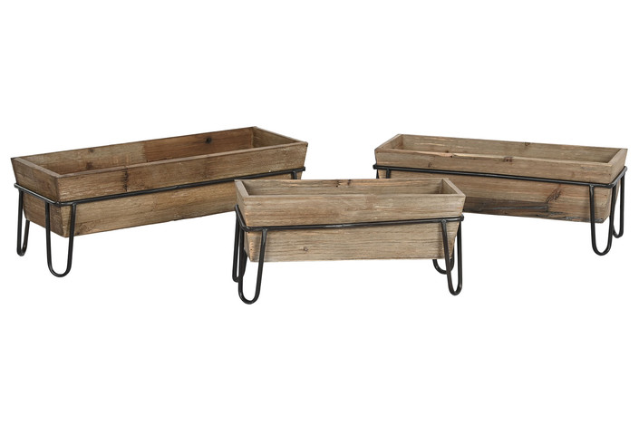 MACETERO SET 3 ABETO METAL 55X21X18,5 RUSTICO