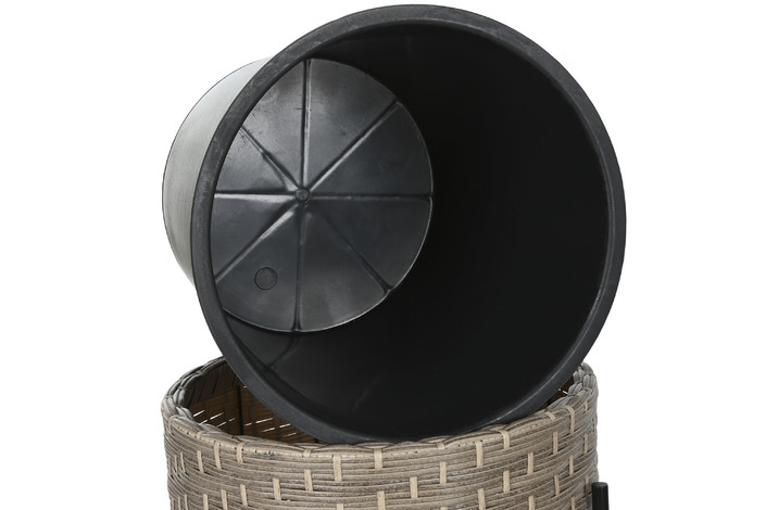 Dimensiones (cm) Longitud 35  |  Fondo 35  |  Altura 60 Material Ratan sintetico  |  Pp  |  Metal