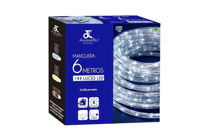 USO INTERIOR/EXTERIOR (IP44). MANGUERA A LA RED ELÉCTRICA. 8 FUNCIONES. GROSOR TUBO: 1 CM. EXTENSIÓN CABLE: 150 CM. LONGUITUD TOTAL: 600 CM.