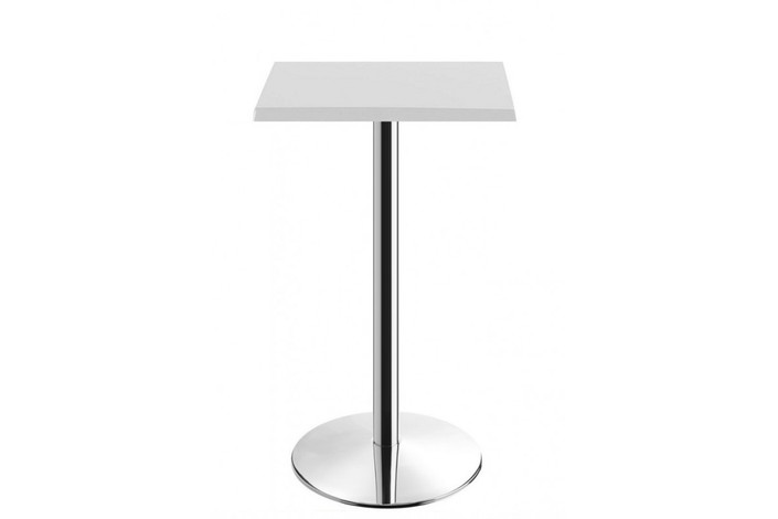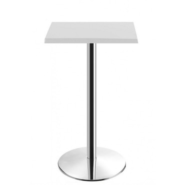 Mesa alta con pie central, acero inoxidable pulido - acabado brillo espejo -. Base circular de 45 cms y tapa de 70X70 cms, a elegir. Uso en interiores.