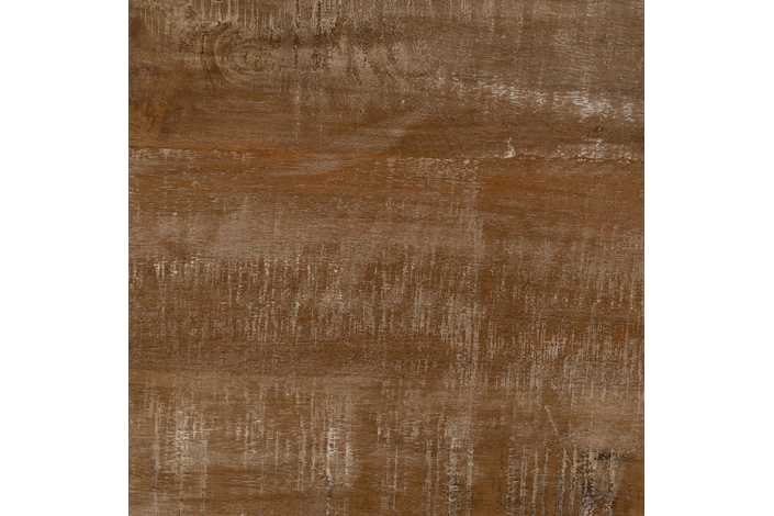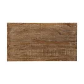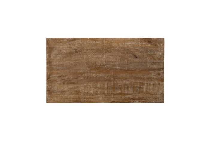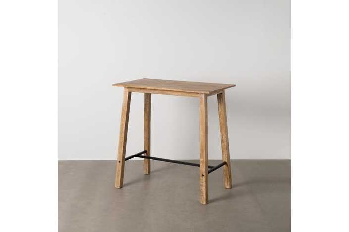 Material: madera de mango, hierro. Grosor tablero: 2cm. Altura reposapies: 27cm.