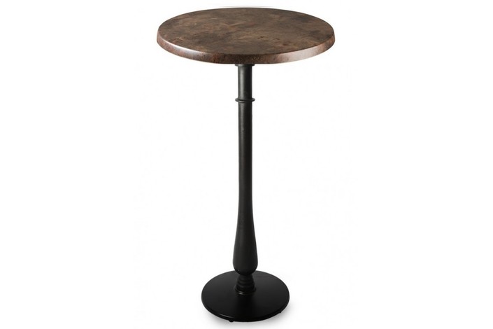 Mesa alta de diseño, multiusos, base de mesa de hierro fundido, revestida en epoxi color negro mate y tapa de 70 cms de diámetro a elegir.