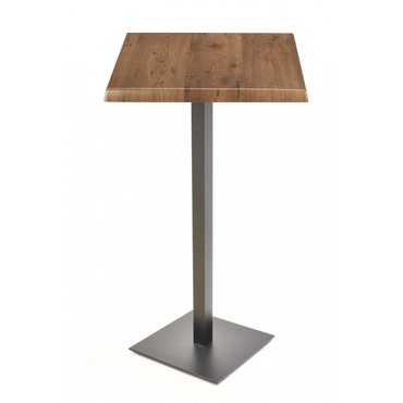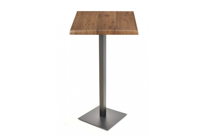 Mesa alta de diseño, multiusos, base de acero, revestida con pintura epoxi con acabado color negro y tapa de 70x70 cms, a elegir.