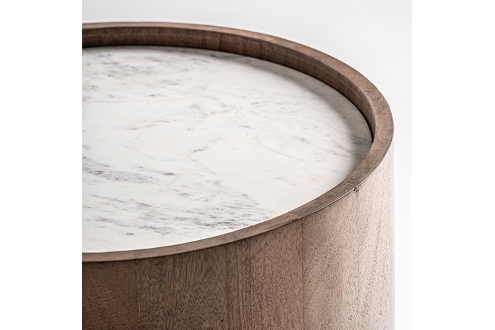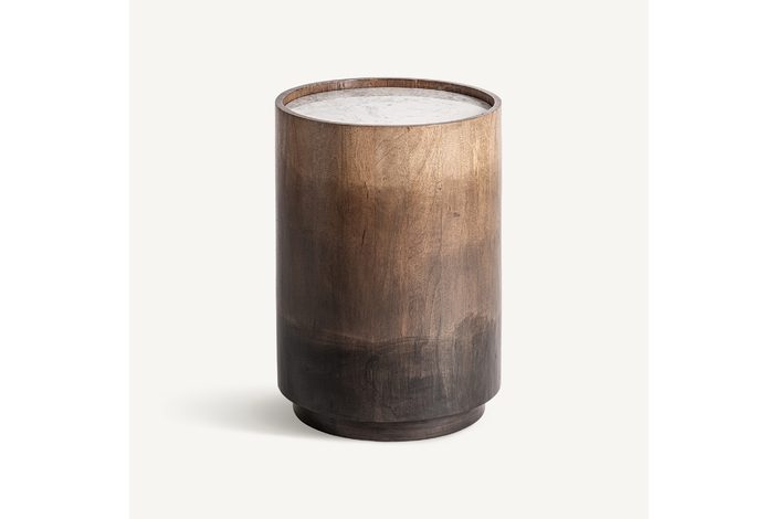 Mesa auxiliar arneke, de estilo art deco. Fabricado en madera de mango, en color marrón, combinado con mármol, en color blanco.