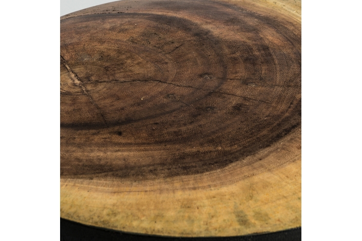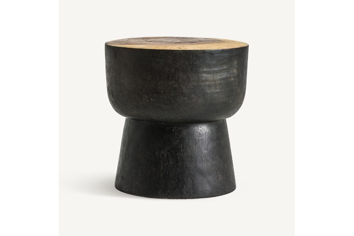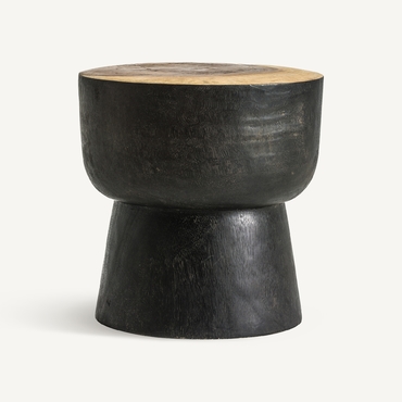 La Mesa Auxiliar tronco de madera negra Arusa de VICAL home es la perfecta fusión de elegancia y carácter rústico. Hecha de madera tropical y con un acabado en negro/natural, esta mesa de 40x40x45cm aporta un toque auténtico a tu espacio. Su diseño artesanal y detalles como nudos y marcas hacen de cada pieza algo único.