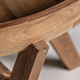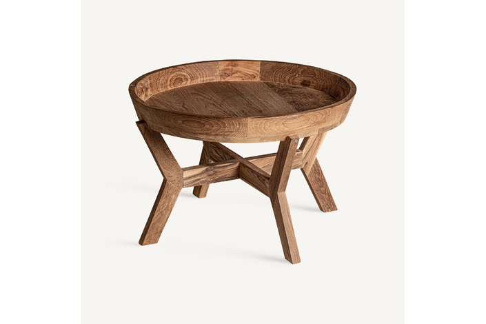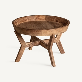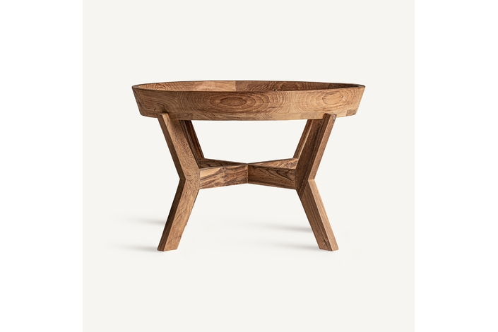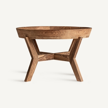 Mesa auxiliar aups, en color marrón, de estilo colonial. Fabricado en madera de teka.