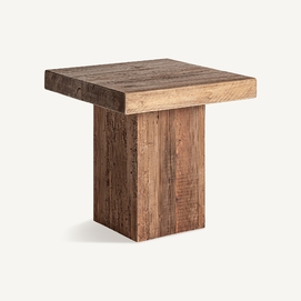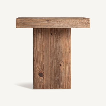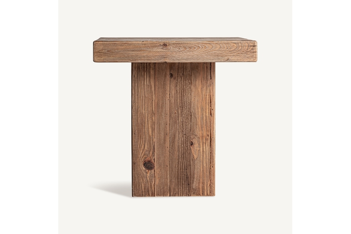Mesa auxiliar breive, de estilo rústico. Fabricado en madera de pino reciclado, en color marrón envejecido.