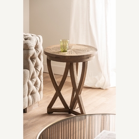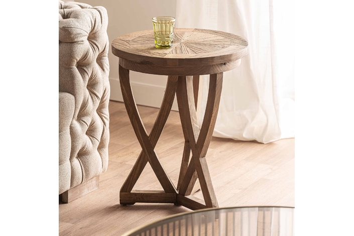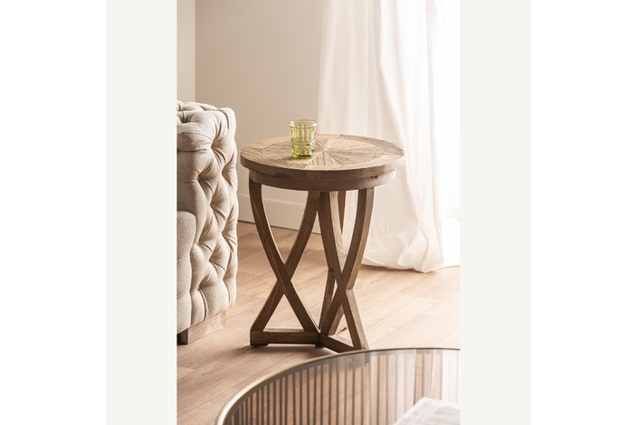 La Mesa Auxiliar Chirlwe de VICAL home combina sostenibilidad y diseño en una pieza única. Elaborada con madera de pino reciclado en acabado natural, esta mesa auxiliar de sofá de 48x48x63cm aporta un toque eco-friendly y elegante a tu espacio. El carácter envejecido y su forma redonda la hacen indispensable para un hogar con conciencia y estilo.