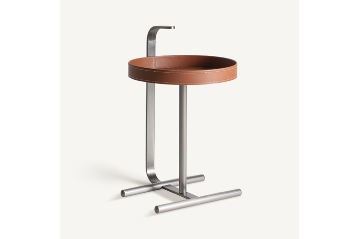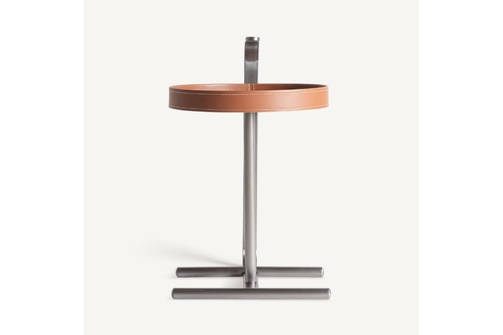 Mesa auxiliar geisingen, en color marrón/plata, de estilo art deco. Fabricado en acero inoxidable, combinado con polipiel.