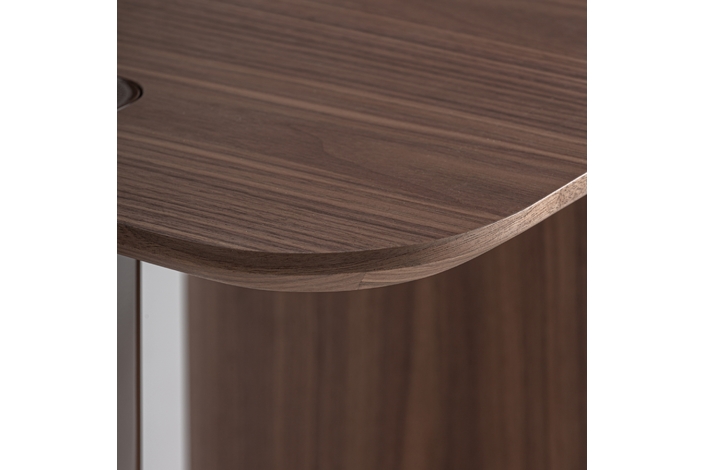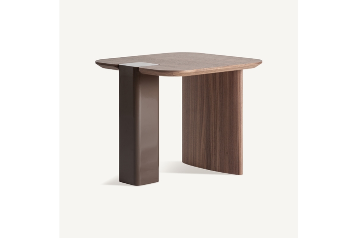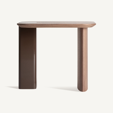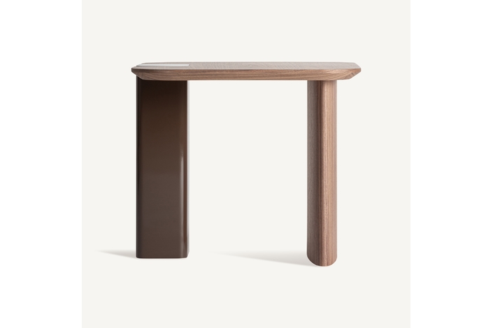 La Mesa Auxiliar Kuftein de VICAL traslada la esencia de la colección a un formato versátil y elegante. Fabricada en madera DM en color chocolate con acabado brillo y combinada con chapa de roble en tono marrón, equilibra líneas limpias y materiales nobles. Desmontable y práctica, es ideal para completar proyectos residenciales o contract con continuidad estética.