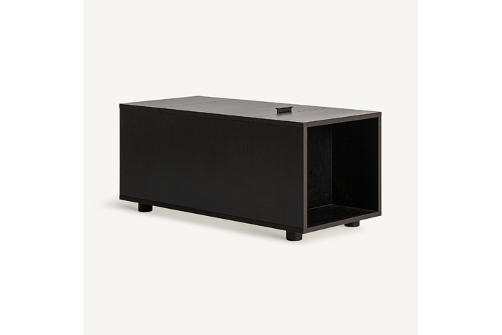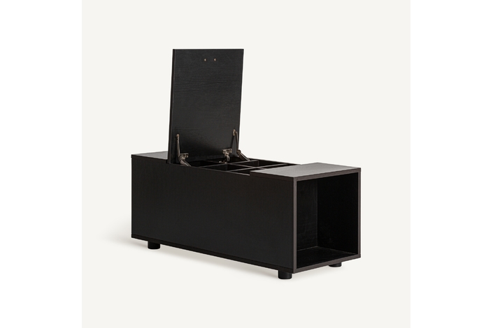 Mesa auxiliar módulo deruta, en color negra, de estilo art deco. Fabricado en madera dm, combinado con melamina. Producto desmontable. Compatible con: 35129,35130,35131,35128.
