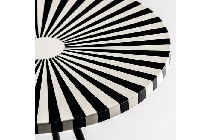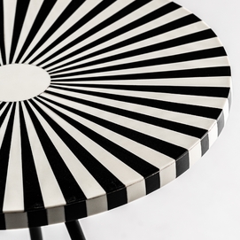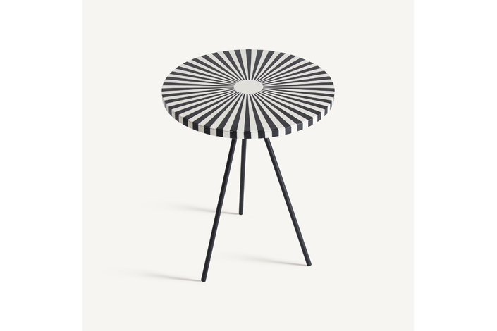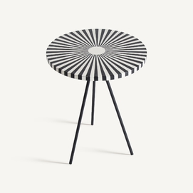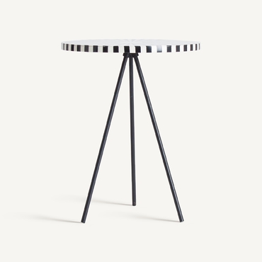 Mesa auxiliar moslims, en color blanco/negro, de estilo art deco. Fabricado en hierro, combinado con hueso. Producto desmontable.