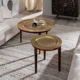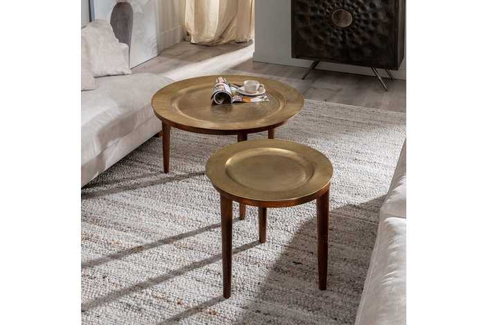 MESA AUXILIAR NATURAL-ORO MADERA-HIERRO 50 X 50 X 52,50 CM