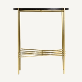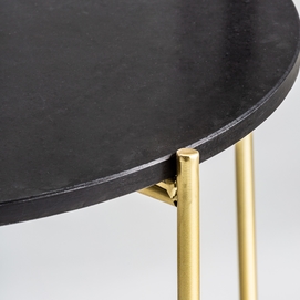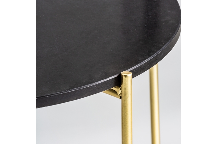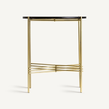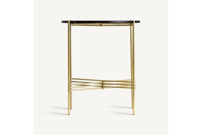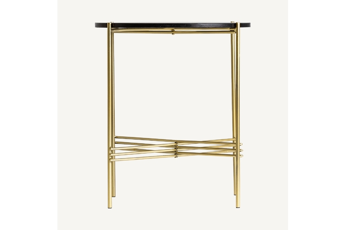 Mesa auxiliar parz, en color negro/oro, de estilo art deco. Fabricado en hierro, combinado con mármol. Producto desmontable.