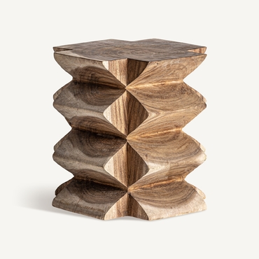 Mesa auxiliar sakalli, en color marrón, de estilo étnico. Fabricado en madera suar.