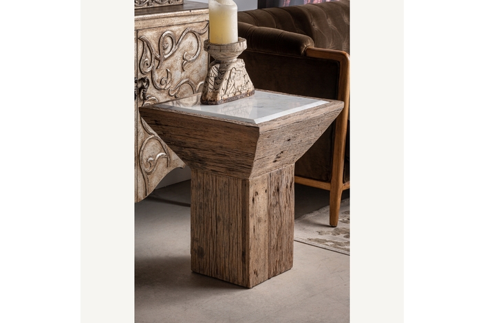 Transforma tu espacio con la Mesa Auxiliar Samsun de VICAL home. Confeccionada en madera de pino en colores natural y blanco, esta mesa auxiliar de madera reciclada de 50x50x61cm es un eco de sostenibilidad y estilo. Ideal para ambientes que valoran la autenticidad, cada pieza cuenta con una madera envejecida que aporta carácter.