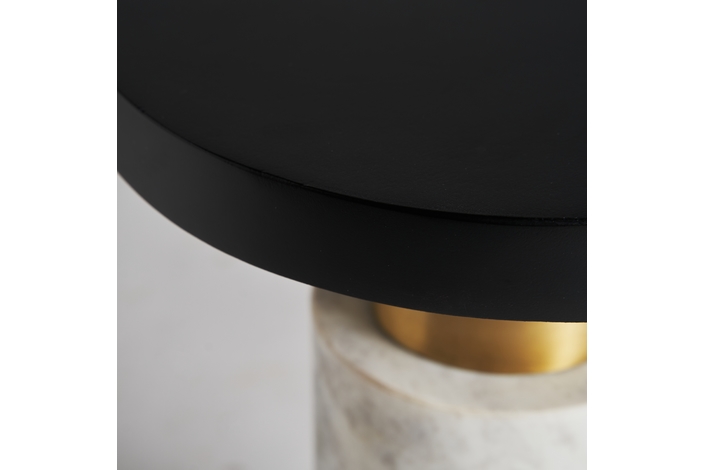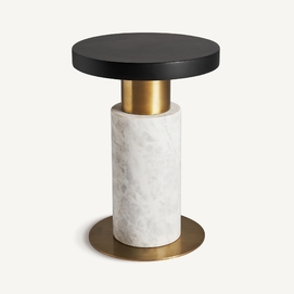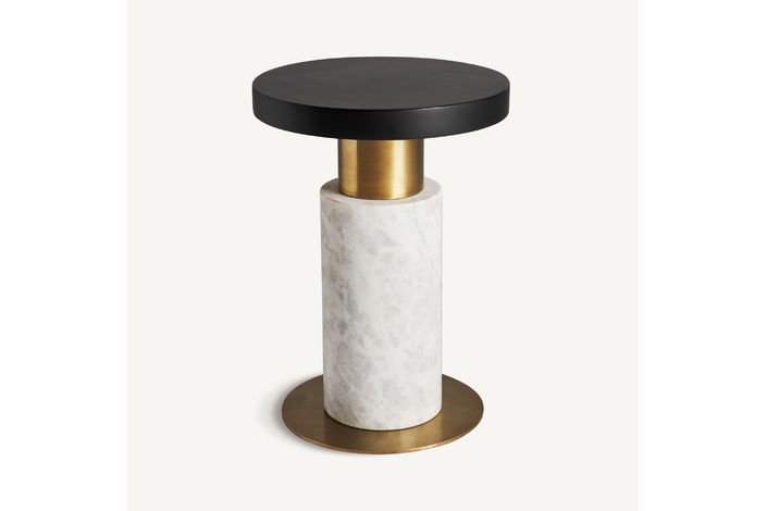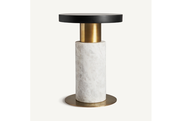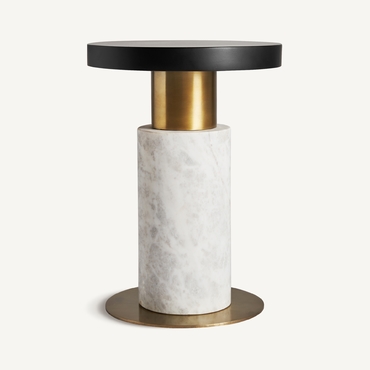 Mesa auxiliar seine, en color negro/blanco/oro, de estilo art deco. Fabricado en mármol, combinado con hierro y latón.