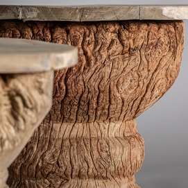 Explora la belleza rústica con la Mesa Auxiliar Surt Besakoa de VICAL home. Mesas auxiliares de madera envejecida hechas de madera de teka y madera de mango en tono natural, esta mesa de 50x50x46cm evoca autenticidad. Sus imperfecciones y variaciones tonales son un testimonio de su fabricación artesanal, convirtiéndola en una pieza única para tu espacio.
