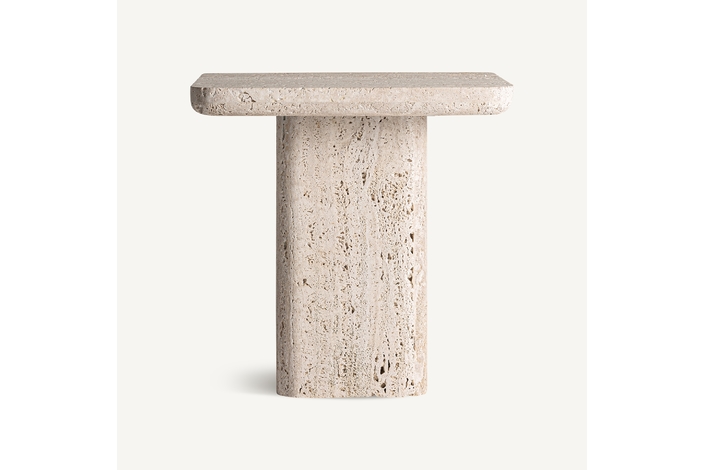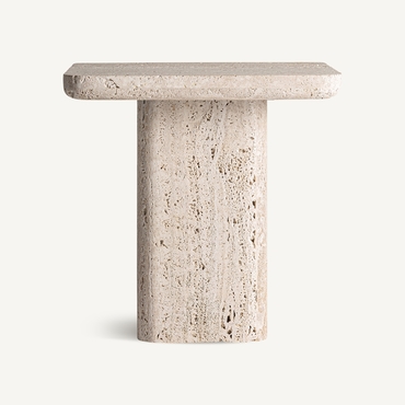 Mesa auxiliar que combina a la perfección la solidez del mármol travertino con un diseño elegante y funcional. Su superficie destaca por sus tonalidades únicas y patrones naturales, que aportan un toque de sofisticación y autenticidad a cualquier ambiente. Con una estructura robusta y líneas limpias, esta mesa auxiliar es ideal para complementar tanto espacios modernos como clásicos, brindando versatilidad y estilo.