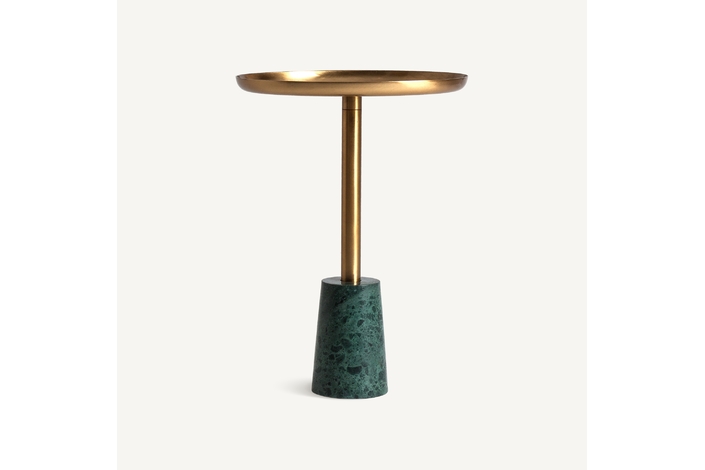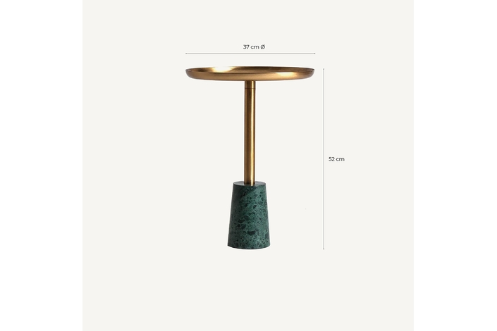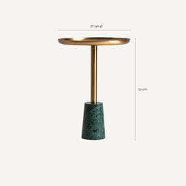 Mesa auxiliar thyrnau, en color verde/oro, de estilo art deco. Fabricado en hierro, combinado con mármol. Producto desmontable.