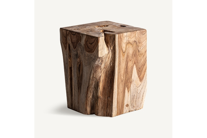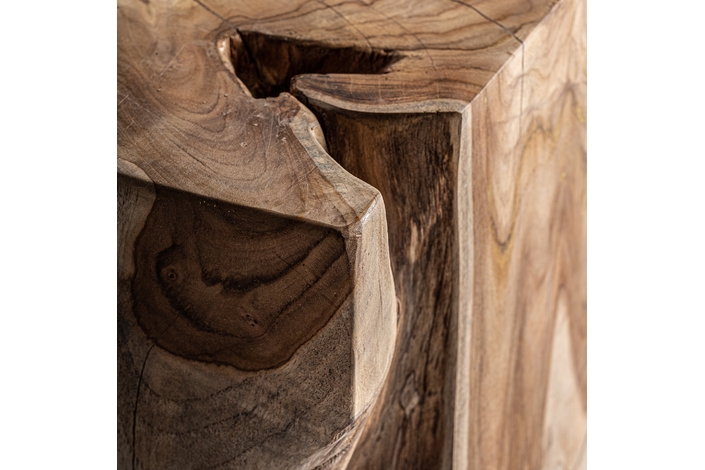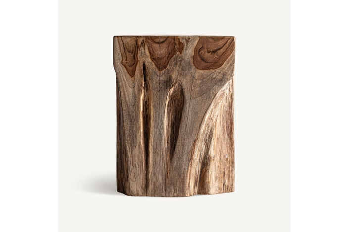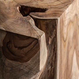 Mesa auxiliar verdins, en color marrón, de estilo étnico. Fabricado en madera de teka.