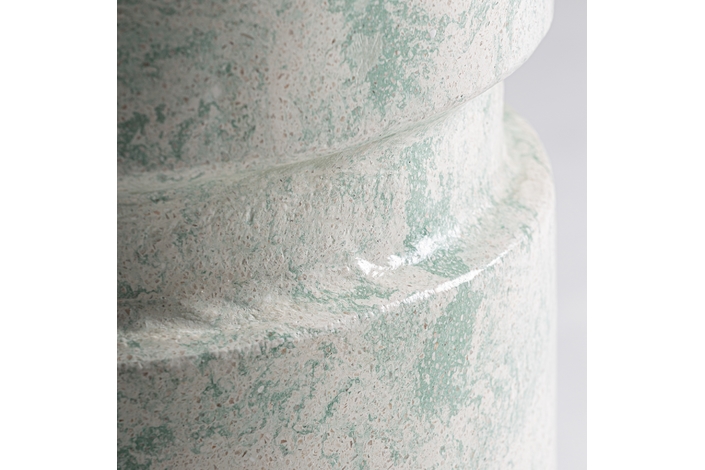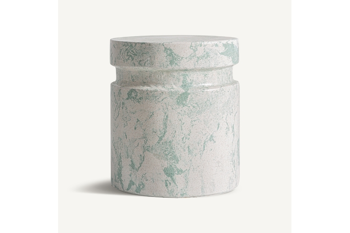 Mesa auxiliar Watern de estilo contemporáneo, fabricado en terrazo en color tonos en verde.