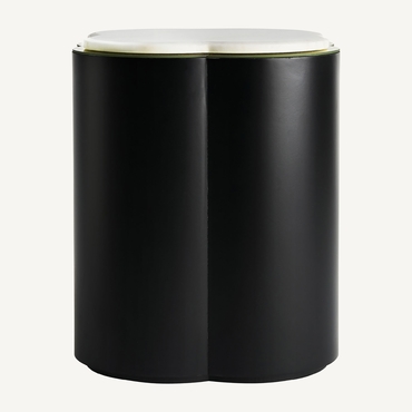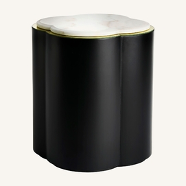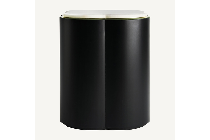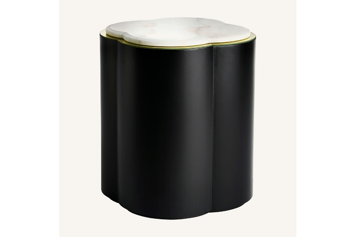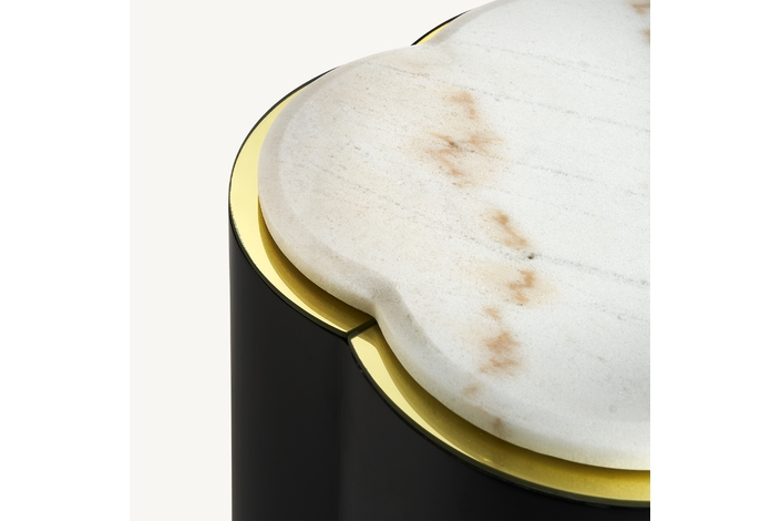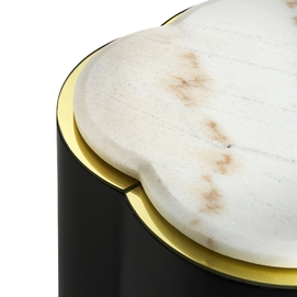 Mesa auxiliar zevio, en color blanco/negro, de estilo art deco. Fabricado en mármol, combinado con cristal y madera dm.