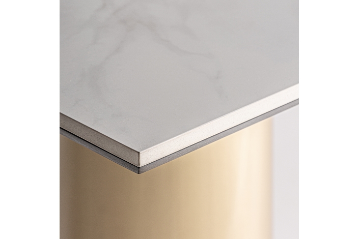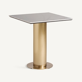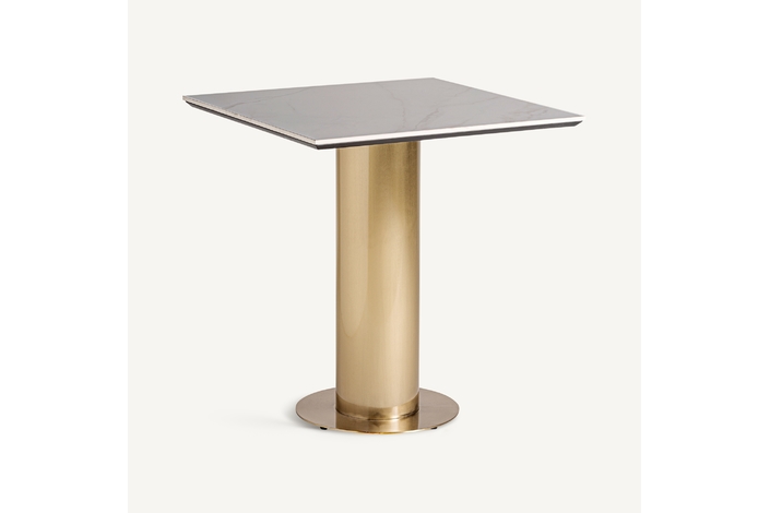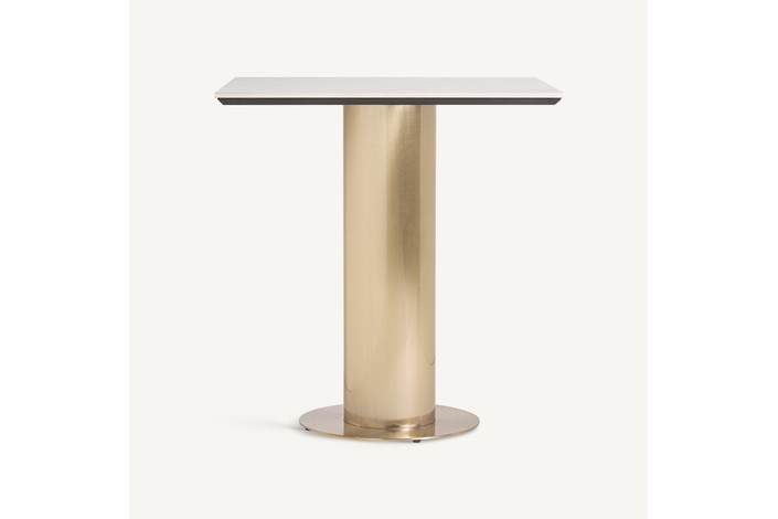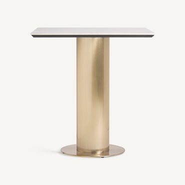 Mesa bar naustdal, en color blanco/oro, de estilo art deco. Fabricado en acero, combinado con mármol sintético. Producto desmontable.