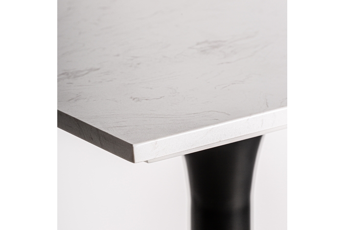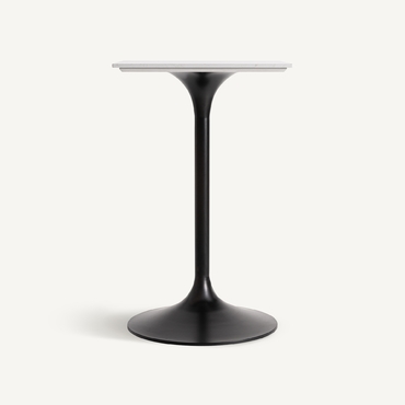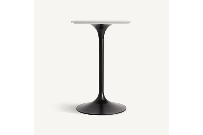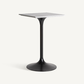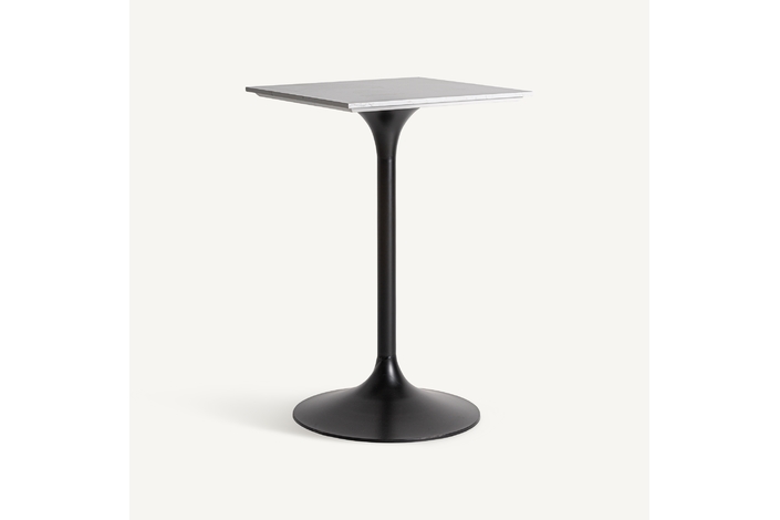Mesa bar perrier, en color blanco/negro, de estilo art deco. Fabricado en piedra, combinado con acero. Producto desmontable.