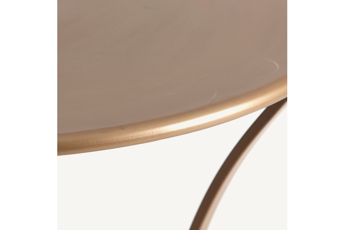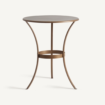 Mesa bar redonda reit, en color cobre, de estilo art deco. Fabricado en hierro.
