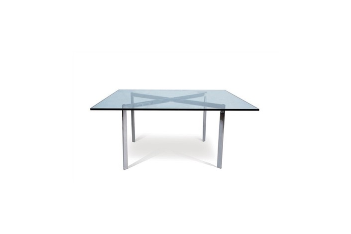 Mesa de diseño, base de acero inoxidable, tapa de cristal de 12 mm. de espesor.