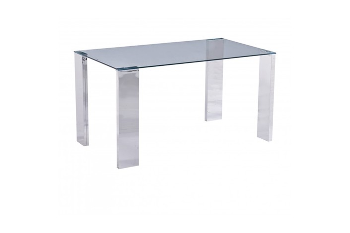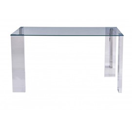 Mesa rectangular, de comedor, acero inoxidable, cristal templado transparente
